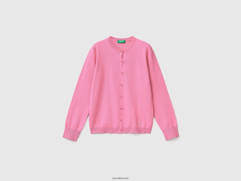 rosa Benetton barn cardigan med rund hals i bomullsblanding 20TRB6095