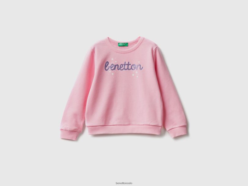 rosa Benetton barn genser i økologisk bomull med glitrende trykk 20TRB2932