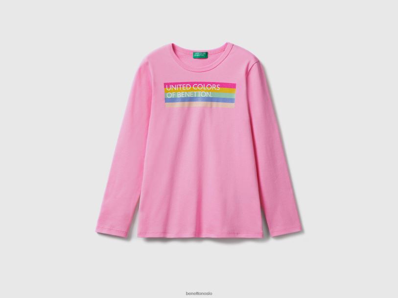 rosa Benetton barn langermet t-skjorte med glittertrykk 20TRB5257