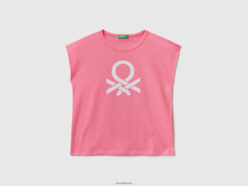 rosa Benetton barn t-skjorte med logo med glittertrykk 20TRB2477