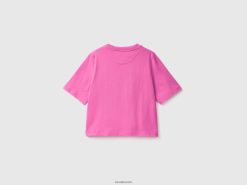 rosa Benetton kvinner 100% bomull t-skjorte i boxy fit 20TRB3783