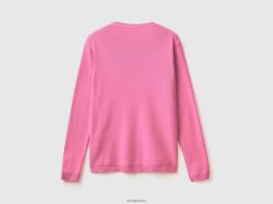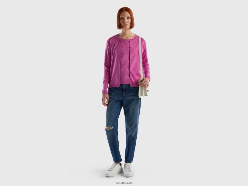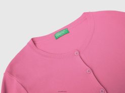 rosa Benetton kvinner cardigan med rund hals i ren bomull 20TRB3497
