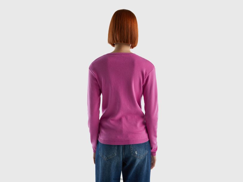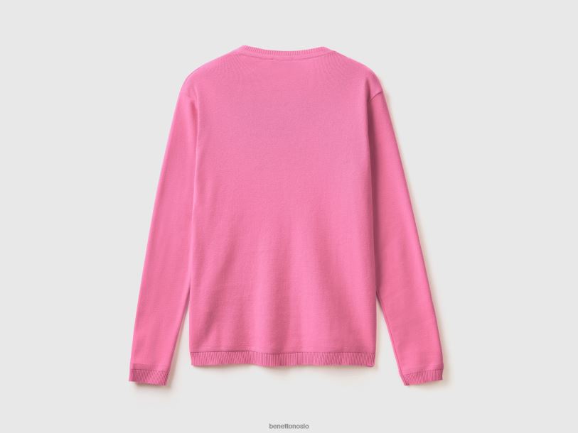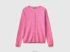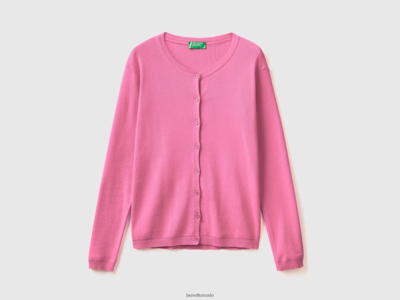 rosa Benetton kvinner cardigan med rund hals i ren bomull 20TRB64