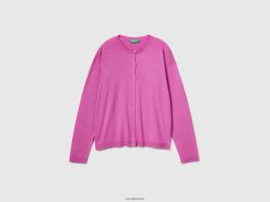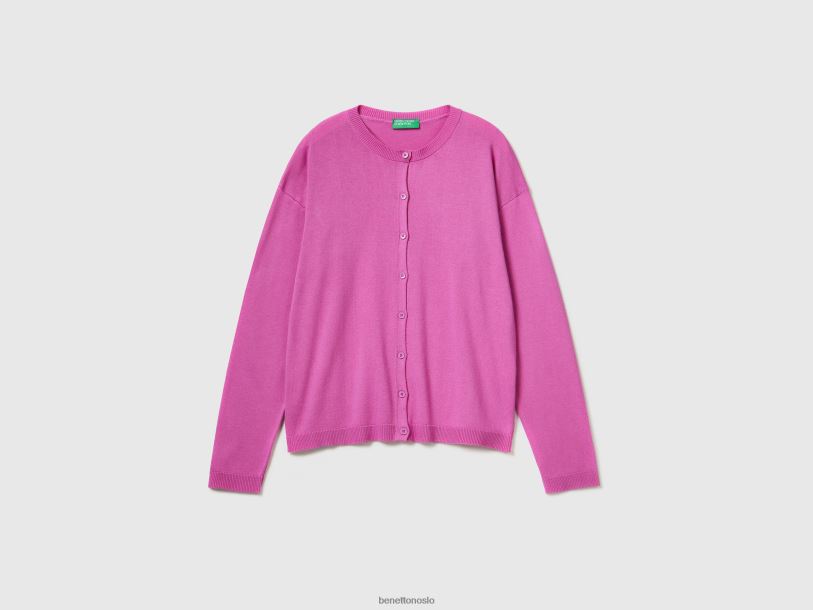 rosa Benetton kvinner cardigan med rund hals og knapper 20TRB3513