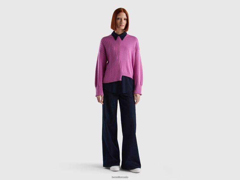 rosa Benetton kvinner genser med ujevn bunn 20TRB3562