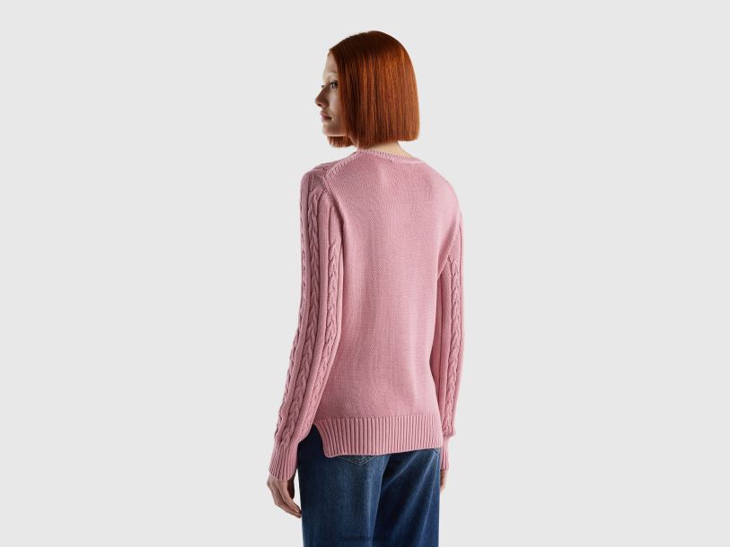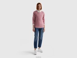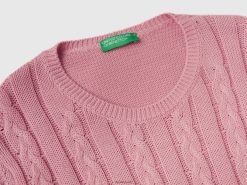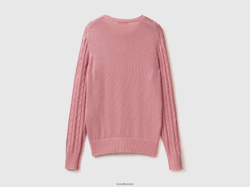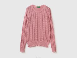 rosa Benetton kvinner kabelstrikket genser 100% bomull 20TRB16