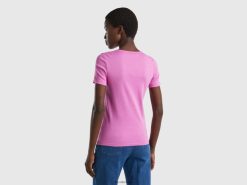 rosa Benetton kvinner t-skjorte i 100 % bomull med glittertrykk logo 20TRB3857