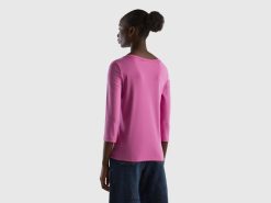 rosa Benetton kvinner t-skjorte med båthals i 100 % bomull 20TRB377