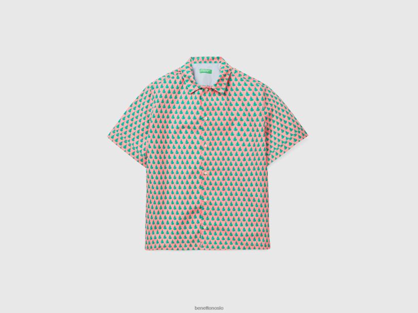 rosa Benetton menn rosa skjorte med pæremønster 20TRB1357