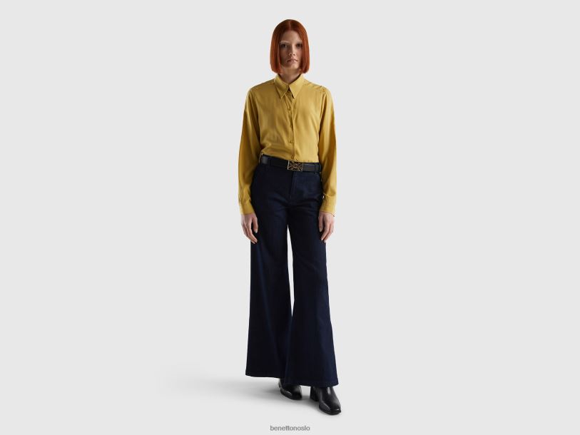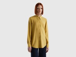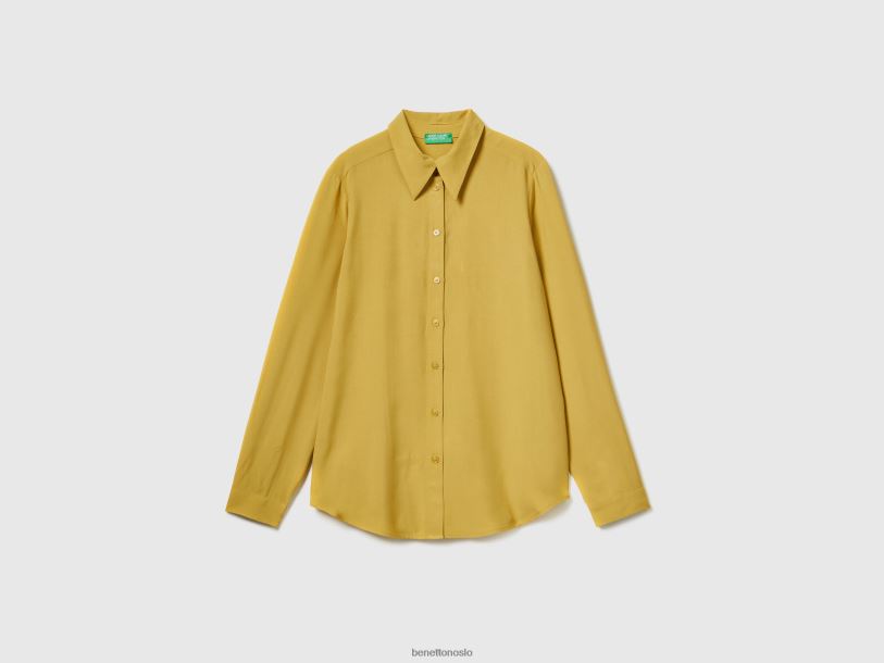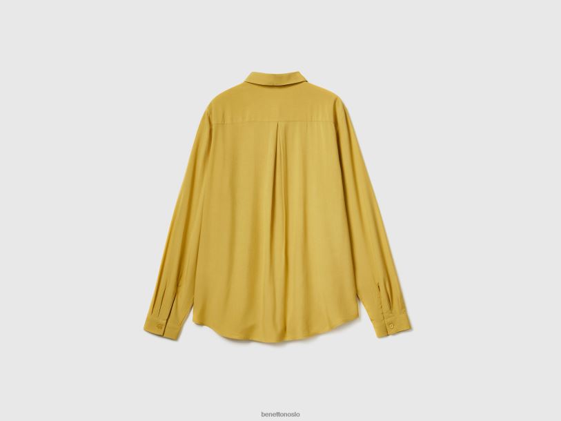 sennep Benetton kvinner regular fit skjorte i bærekraftig viskose 20TRB3995