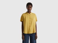 sennep Benetton kvinner regular fit skjorte i bærekraftig viskose 20TRB522