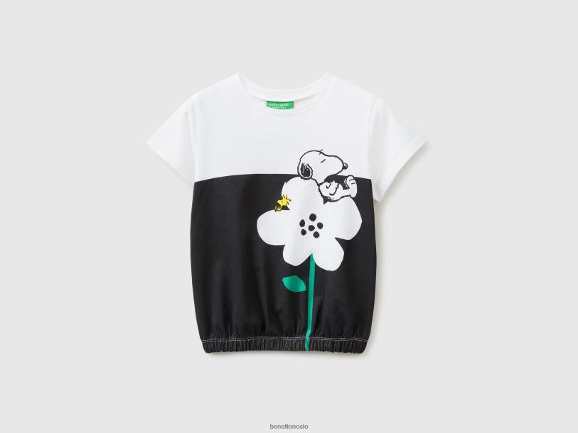svart Benetton barn peanøtter t-skjorte med strikk nederst 20TRB2859