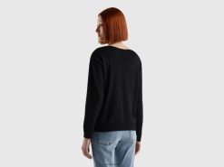 svart Benetton kvinner cardigan med rund hals i ren bomull 20TRB223