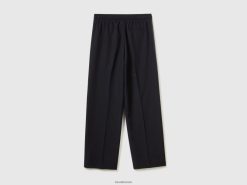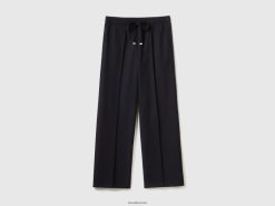svart Benetton kvinner flytende bukse med snøring 20TRB562