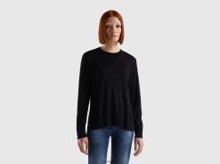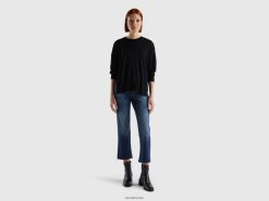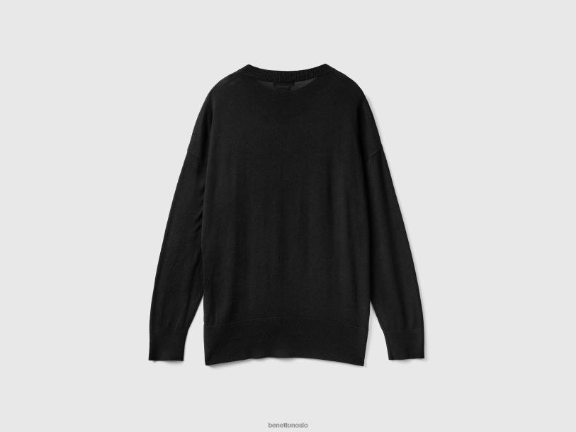 svart Benetton kvinner genser i viskoseblanding med splitt 20TRB3590