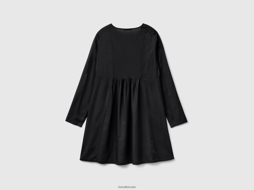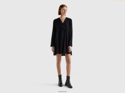 svart Benetton kvinner kort kjole i bærekraftig viskose 20TRB548