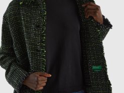 svart Benetton kvinner skjorte-jakke i tweed 20TRB264