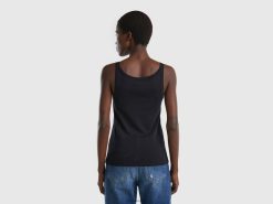 svart Benetton kvinner sort tank topp i ren bomull 20TRB433