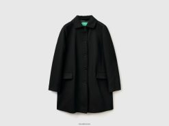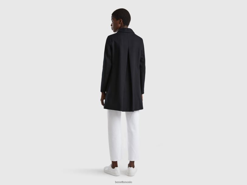 svart Benetton kvinner støvkåpe i ren bomull 20TRB3736