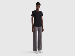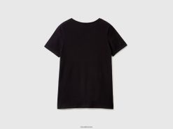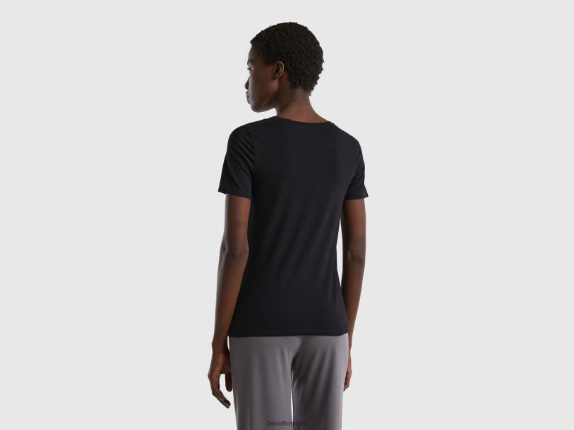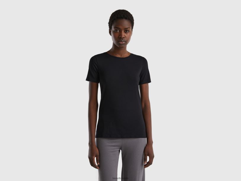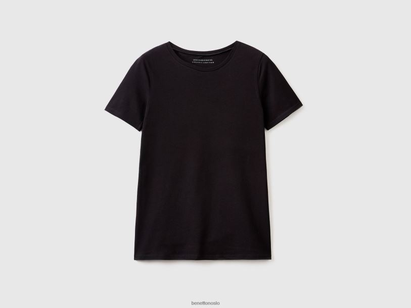 svart Benetton kvinner super stretch t-skjorte i økologisk bomull 20TRB4211