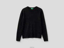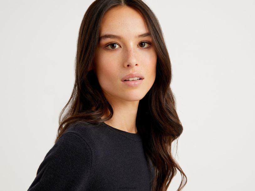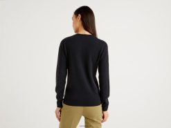 svart Benetton kvinner svart genser med rund hals i merinoull 20TRB3633