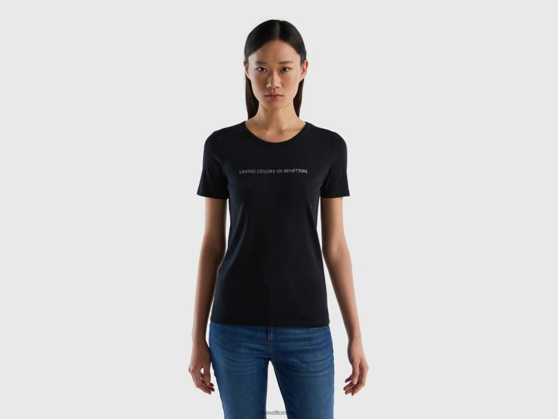 svart Benetton kvinner t-skjorte i 100 % bomull med glittertrykk logo 20TRB428