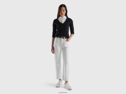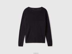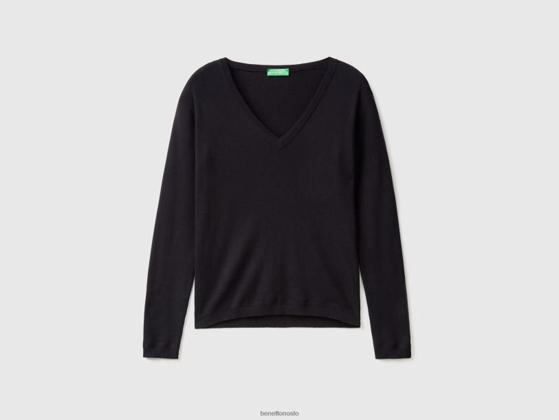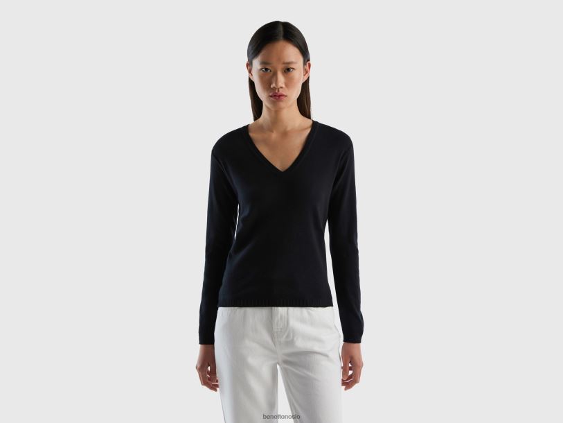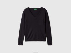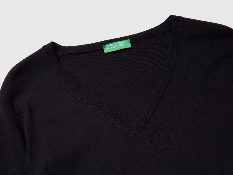 svart Benetton kvinner v-halset genser i ren bomull 20TRB215