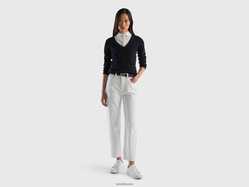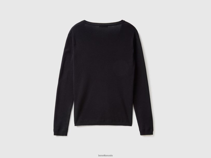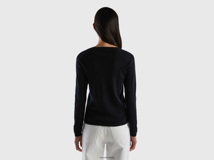 svart Benetton kvinner v-halset genser i ren bomull 20TRB3657