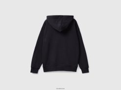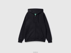 svart Benetton menn hettegenser i bomull med glidelås 20TRB4524