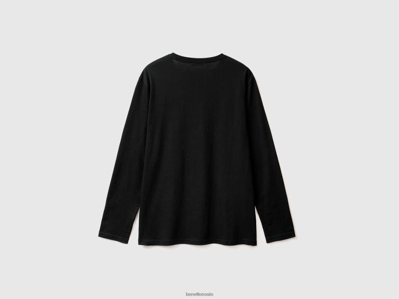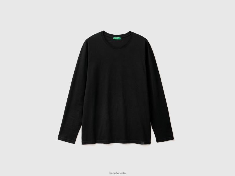 svart Benetton menn langermet t-skjorte i ren bomull 20TRB1304