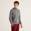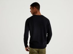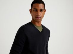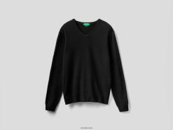 svart Benetton menn sort v-hals genser i ren merinoull 20TRB1175