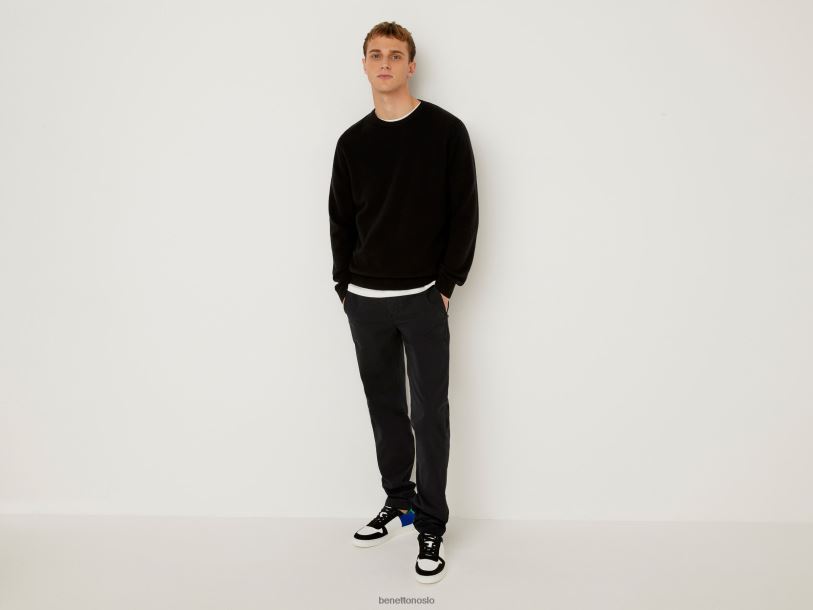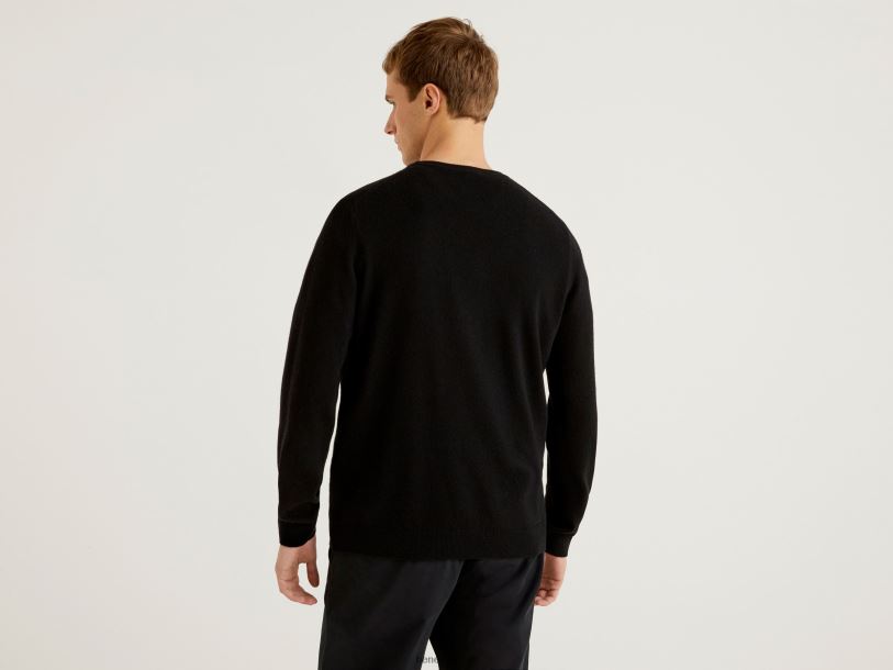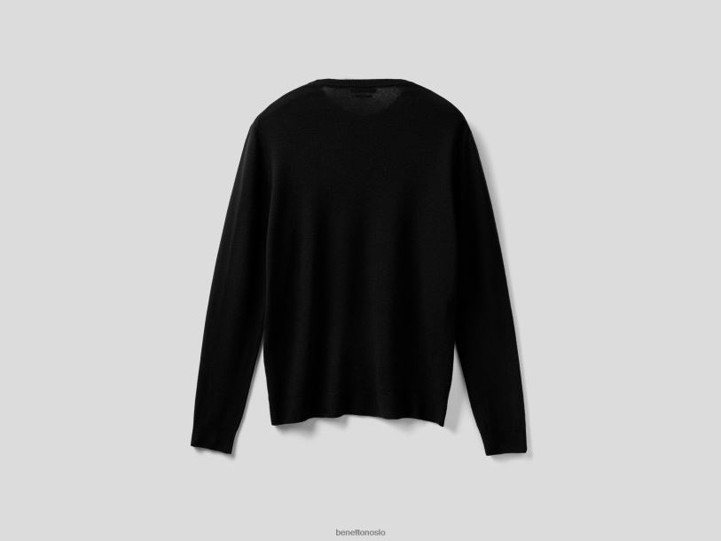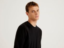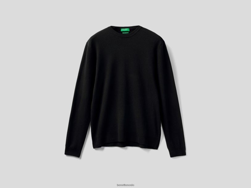 svart Benetton menn svart genser med rund hals i ren merinoull 20TRB6036