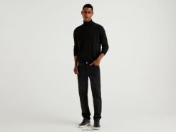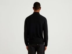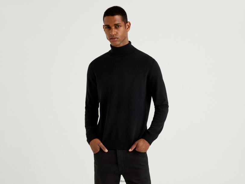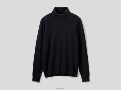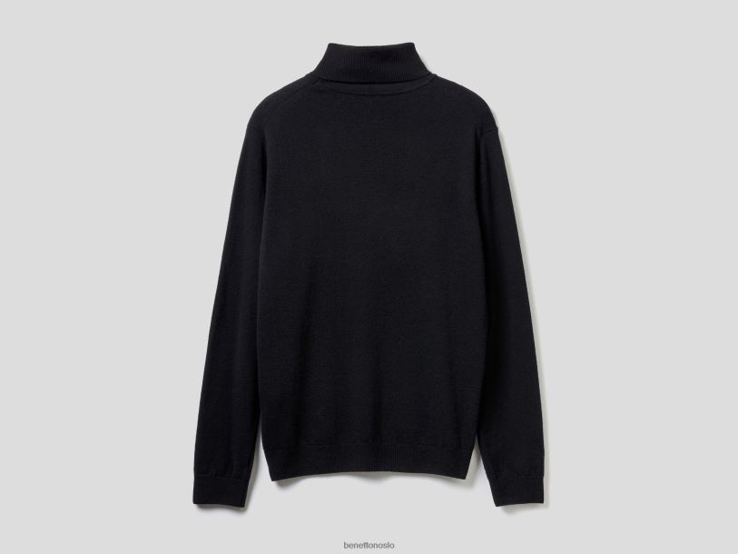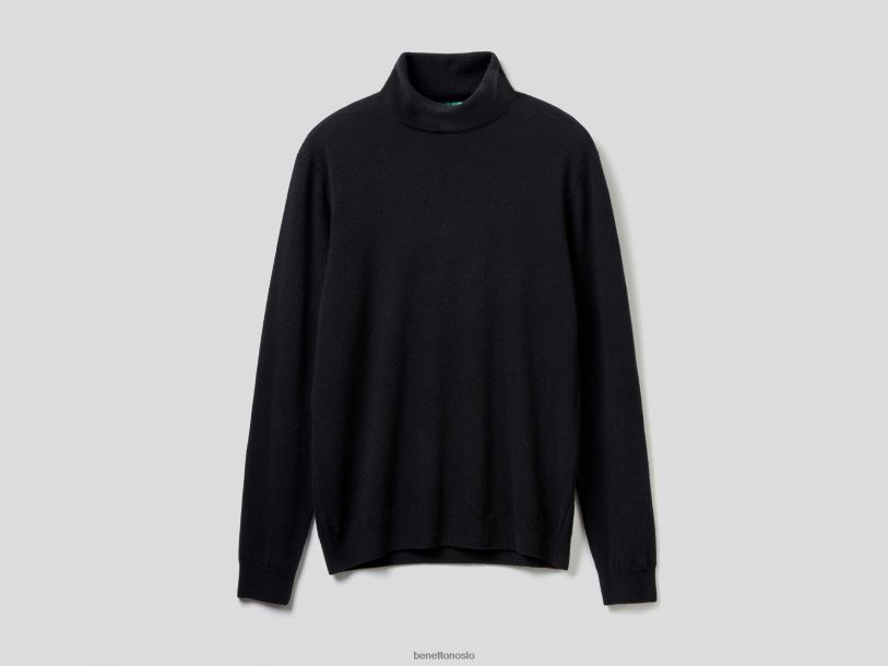 svart Benetton menn svart turtleneck i ren merinoull 20TRB4413