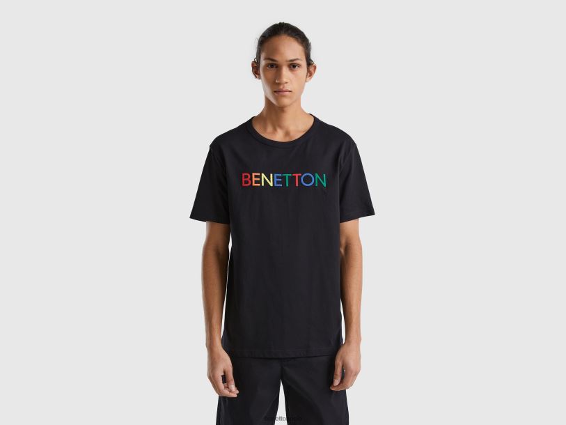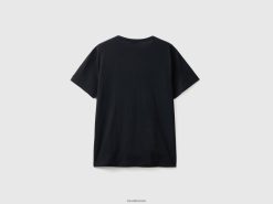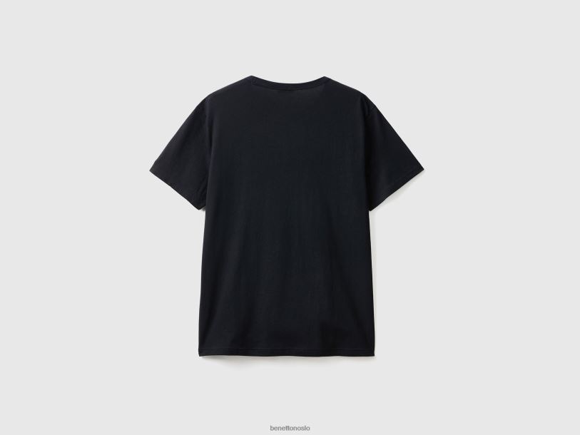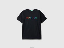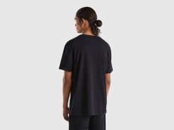 svart Benetton menn t-skjorte i økologisk bomull med logotrykk 20TRB1266