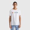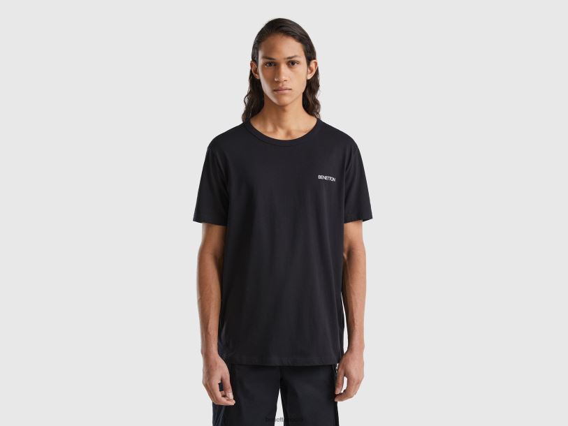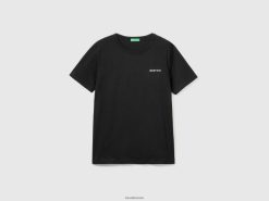 svart Benetton menn t-skjorte i økologisk bomull med logotrykk 20TRB4495