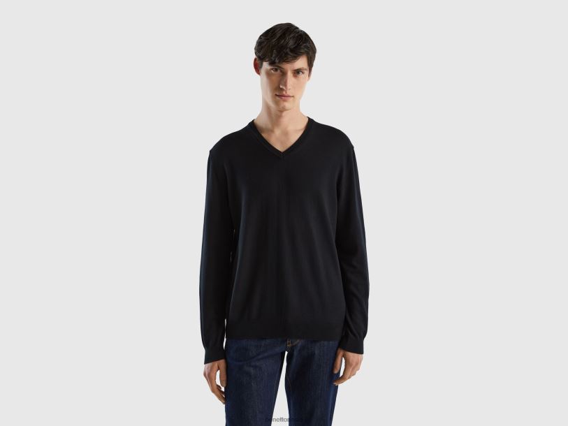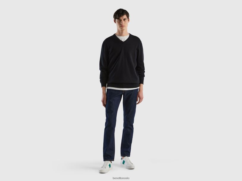 svart Benetton menn v-halset genser i ren bomull 20TRB4408