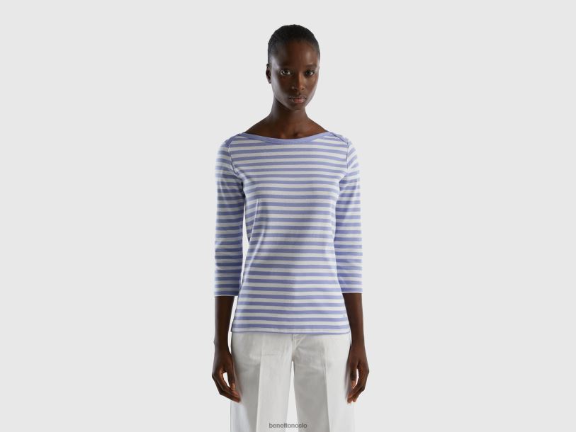 syrin Benetton kvinner stripet 3/4-ermet t-skjorte i 100% bomull 20TRB307