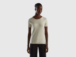 beige Benetton kvinner t-skjorte med båthals i 100 % bomull 20TRB3950