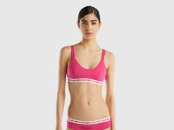 fuchsia Benetton kvinner langermet t-skjorte i ren bomull 20TRB3821