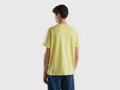gul Benetton menn t-skjorte i økologisk bomull med logotrykk 20TRB4456