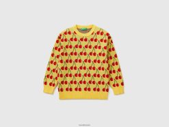 gul Benetton barn gule bermudaer med kirsebærmønster 20TRB2000