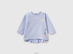 himmelblå Benetton barn t-skjorte med trykk og volanger 20TRB5771