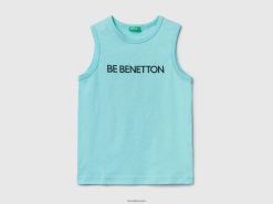 himmelblå Benetton barn tank topp i 100 % økologisk bomull med logo 20TRB1733