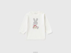 kremhvit Benetton barn boxy fit t-skjorte med applikasjon 20TRB5254
