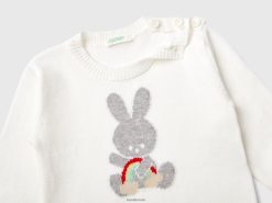 kremhvit Benetton barn cardigan med jacquardstrikk 20TRB3321