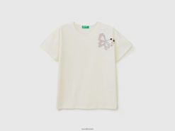 kremhvit Benetton barn boxy fit t-skjorte med applikasjon 20TRB5254