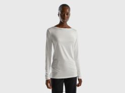 kremhvit Benetton kvinner t-skjorte i bærekraftig stretch viskose 20TRB438