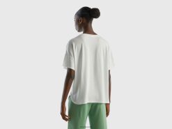 kremhvit Benetton kvinner t-skjorte i bærekraftig stretch viskose 20TRB413