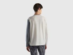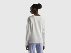 kremhvit Benetton kvinner t-skjorte med trykk i langfiber bomull 20TRB1033