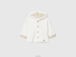 kremhvit Benetton barn genser med hette i økologisk bomull 20TRB5865